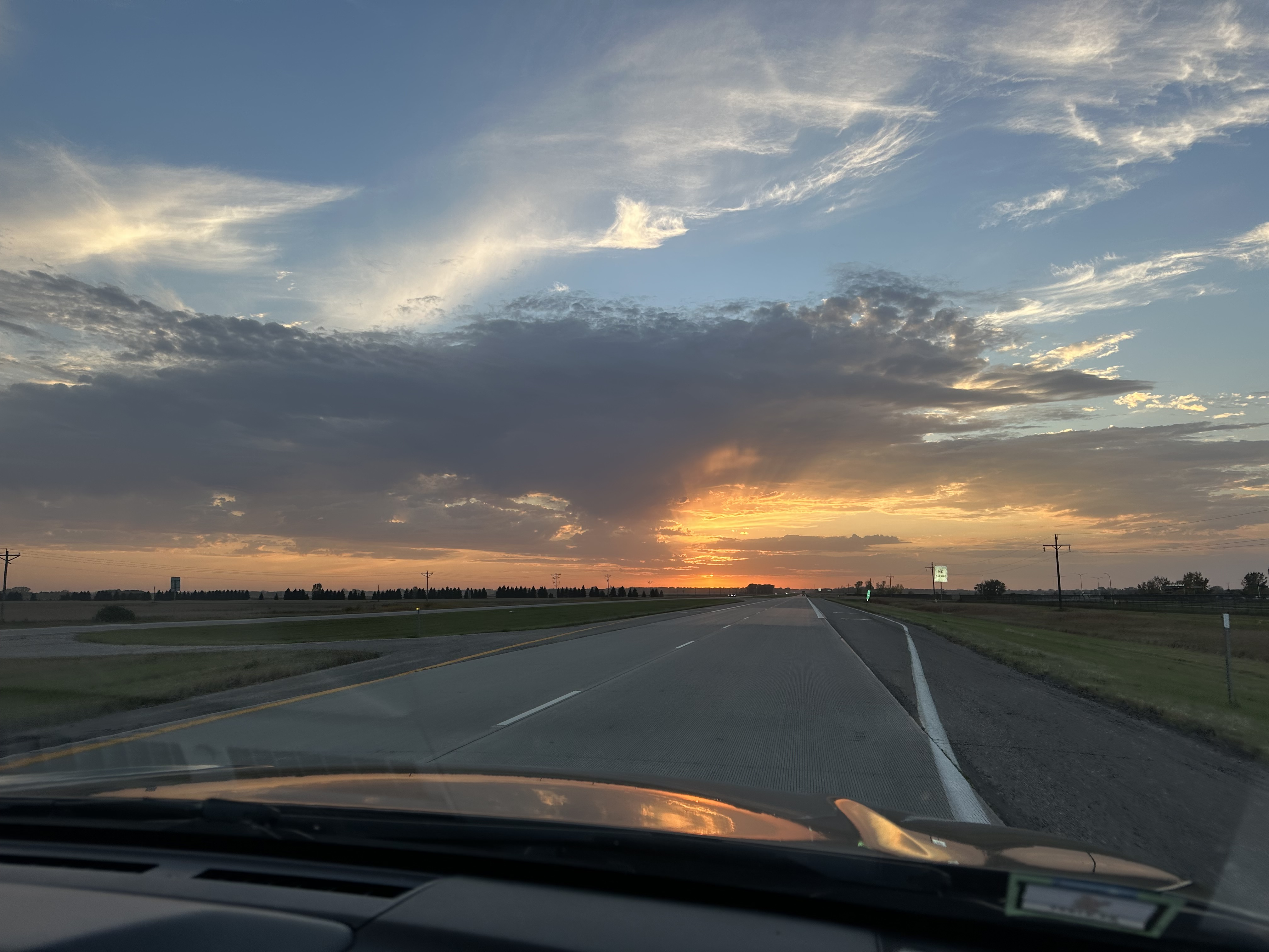 First one above was on US2 in northern ND. next couple were sunset at Lake Metigoshe, ND. Last one was actually the first taken, at a state park along US 2 just east of Superior, WI (Amnicon Falls).