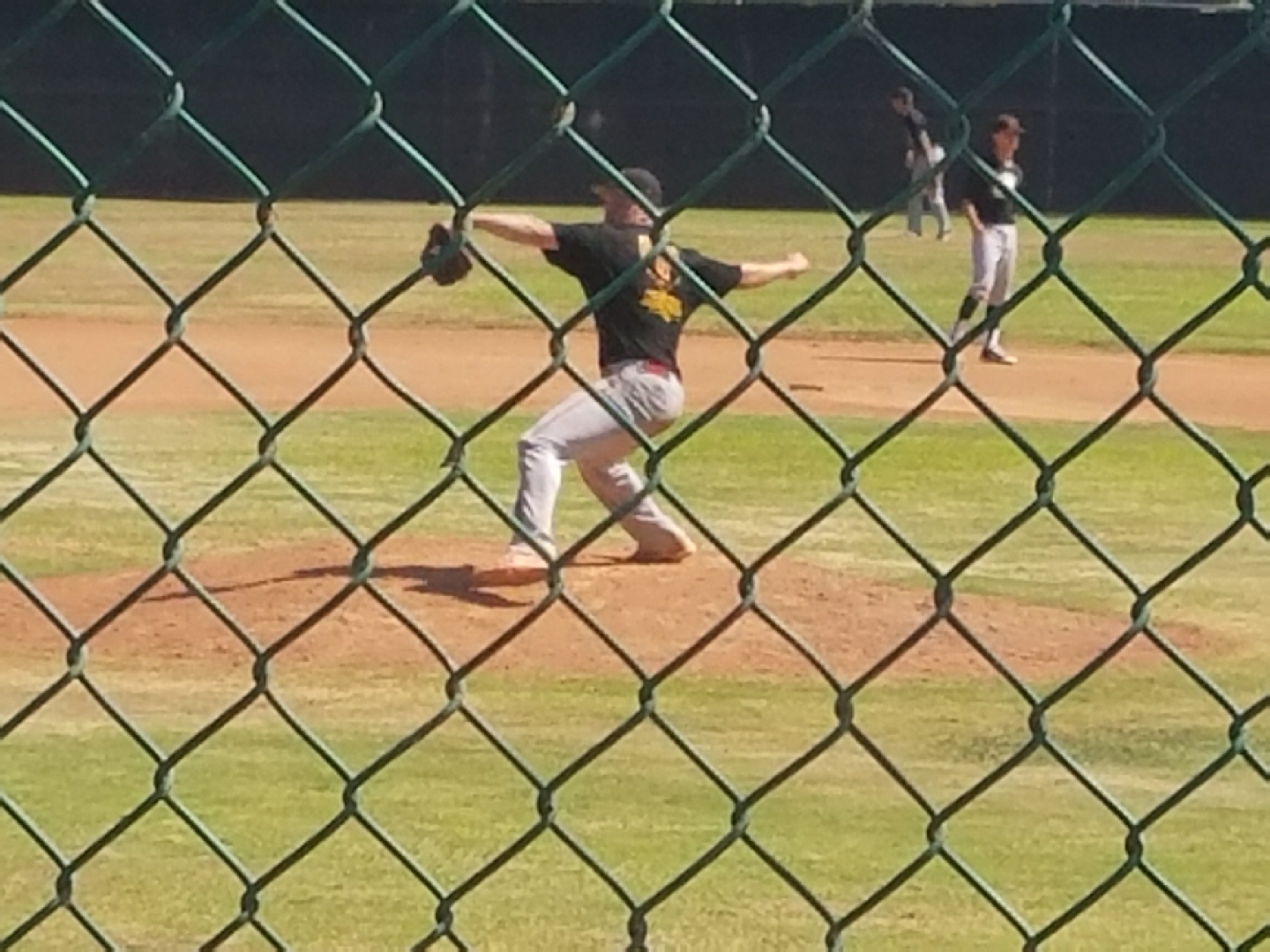 Just got a call from my son with some exciting news.  My grandson was pitching a varsity high school game and the press box was filled with division 1 & 2 college scouts and coaches.  His first pitch was clocked at 92 mph on the gun.  All of a sudden, the press box cleared and they all congregated behind home plate in the stands.  He threw 22 pitches averaging 90 mph.  He pitched his two innings and was put at first base.  He gets up to bat in the next inning and hits a 385 foot homer into left field.