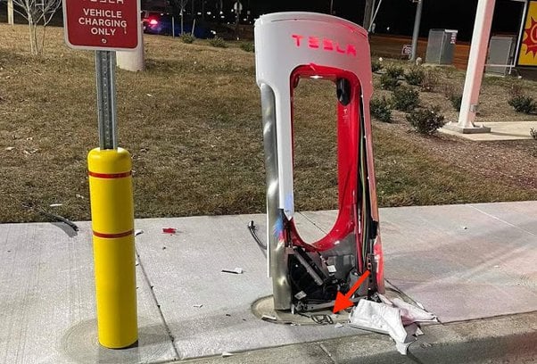 That looks like someone got frustrated when the nozzle wouldn’t dispense gas.