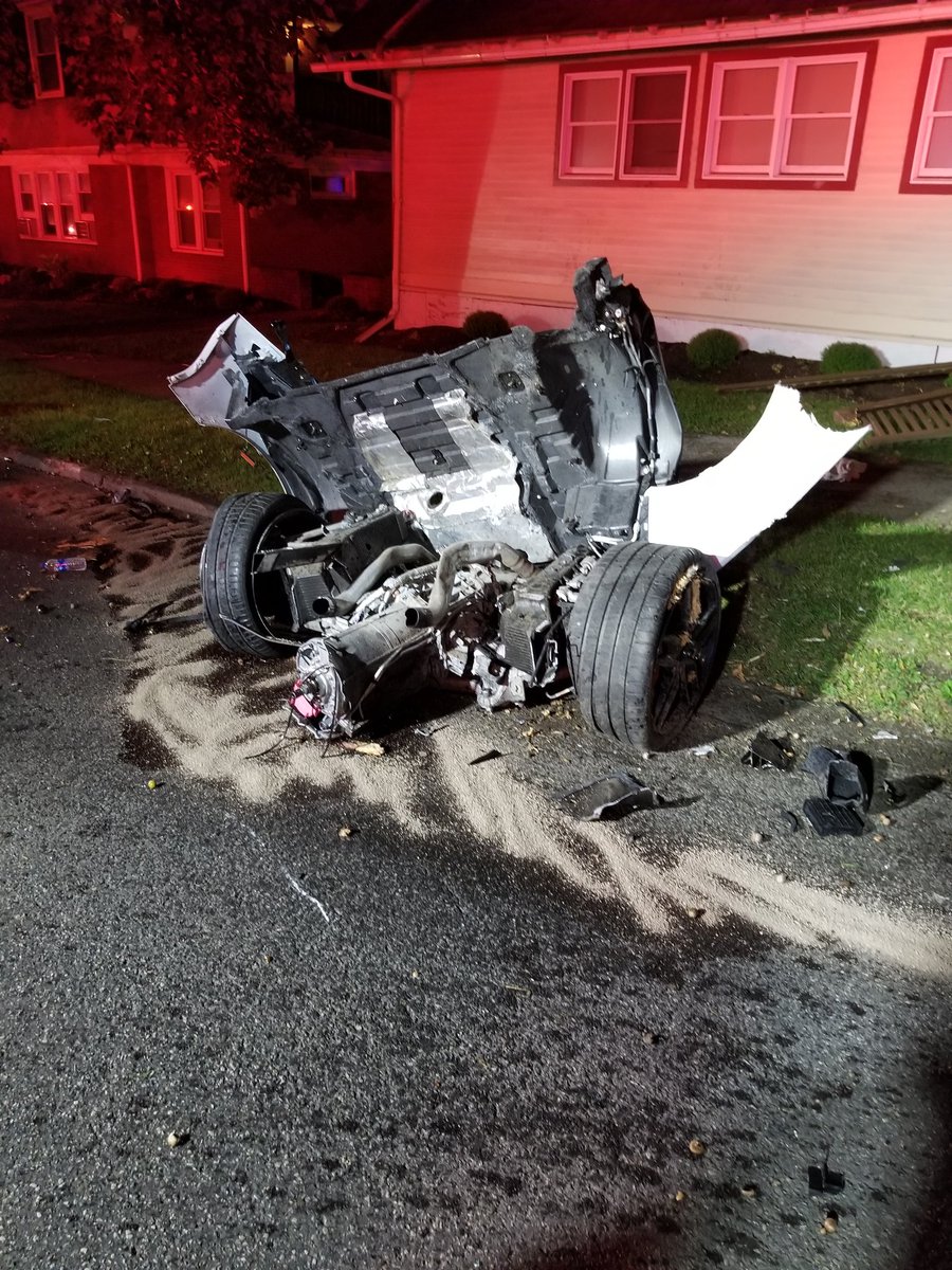 According to the site linked, initial reports at 4:22AM said it was a car-motorcycle crash. It wasn't until the fire department arrived that they saw it was a single car split in half.