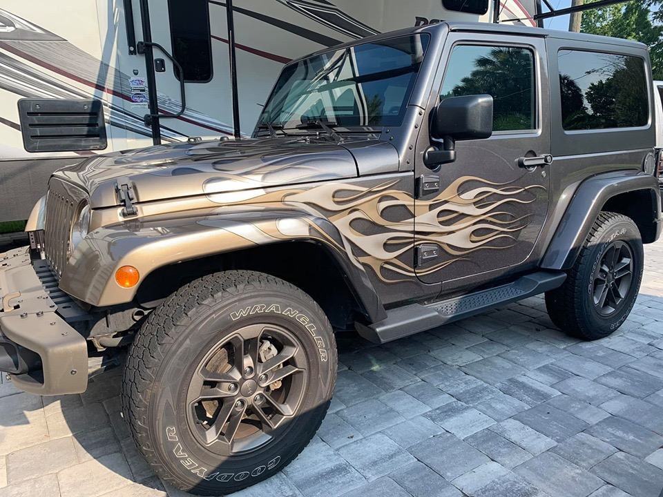 Hard no on that Jeep, spend a little more and buy a new one. I hope the flames are a wrap, I'll wager the gigantor 5th wheel/MH behind it is owned by the same person.