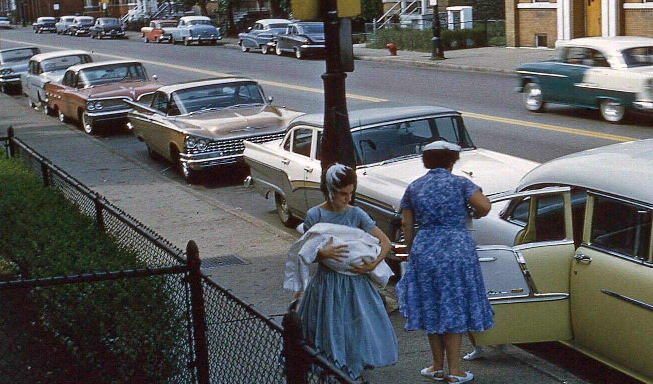 I see what I think is a Triumph Herald and either a Wolseley Hornet or Riley Elf immediately ahead of it. Is that an Austin Cambridge by Pininfarina on the other curb?