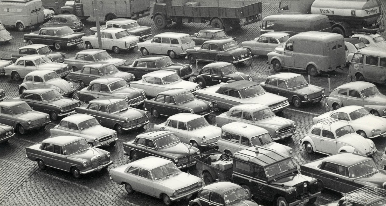 A couple more - Volvo 544 at far right beside the Ghia, Fiat 600 to the right of the W111 fintail at top left, and for another "new" car, could what looks like a Vauxhall FB Victor beside a Beetle, behind an Opel Rekord?