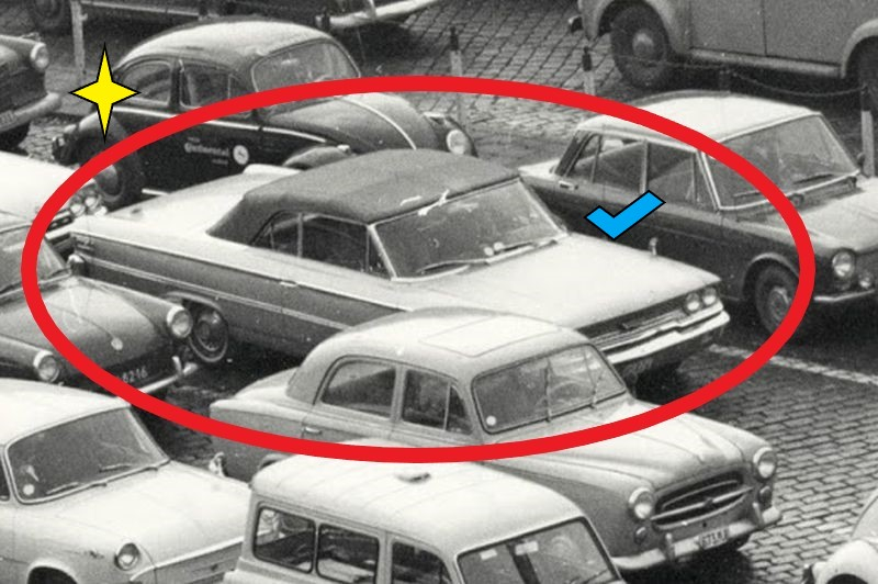There are also two Volvo 122/Amazon in the pic, a coupe and a sedan. To the right of the Amazon sedan in the lower middle of the pic is a Skoda 1000, and there appears to be another Skoda, this one an Octavia, behind the Amazon sedan. That's enough for me tonight :)