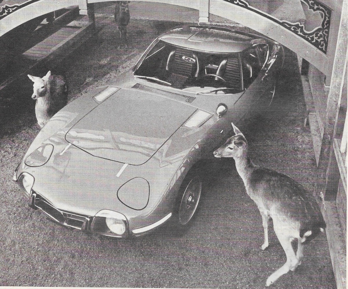 The deer are admiring a Toyota 2000 GT - about 1966 I think - they made a couple of roadsters too by just cutting off the roof for the James Bond film You Only Live Twice.