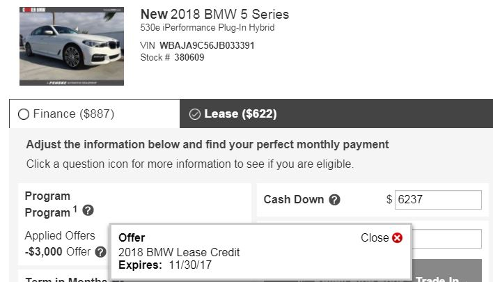 I’ve been using the same incentive setup throughout, $3,000 BMW of Austin Discount on this one + $3,000 Lease Credit on the hybrid + $1,000 Conquest Certificate + $1,250 tax credit. The latter two were dependent on my having a vehicle here for you to contract on by end of the month although I’d like to think we’ll have something similar as December rolls around. I can lock in the Lease credit for an order. The certificate and tax credit aren’t lockable unfortunately.