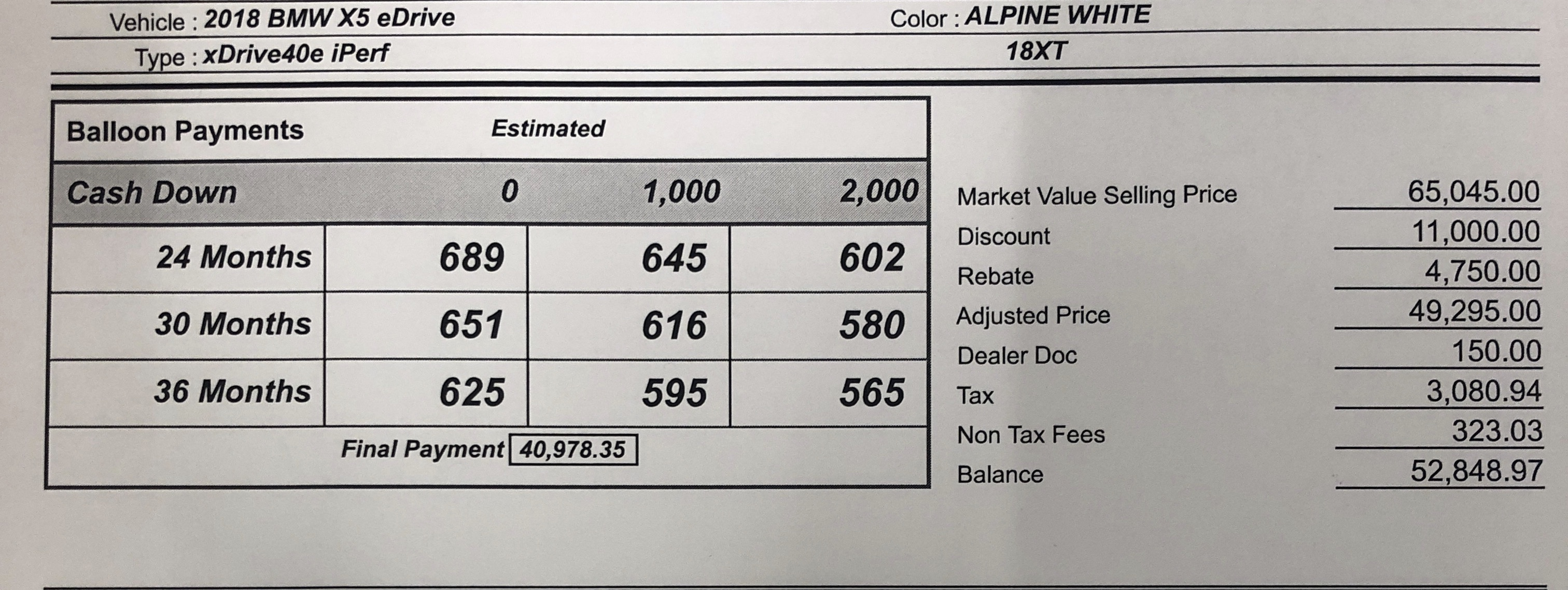 Signed Owner's choice on 2018 X5 XDrive40e; 4074 miles; 10k/36; 0$ DAS; $614.00 a Month; (Additional discount I am getting $4680 Federal tax credit + $2000 my company offers Low-carbon vehicle reimbursement because title on my name and sold as brand new ).