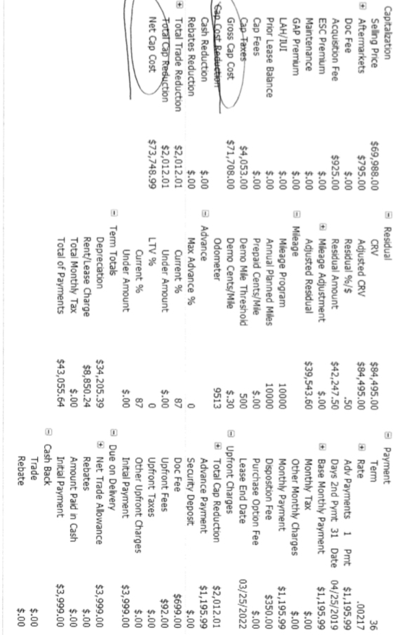 From the numbers does it appear they are adding $2012 to the lease from my trade-in - instead of using it as a reduction given I own the vehicle free and clear?