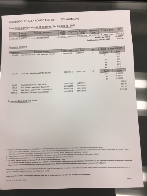 $1000 2018 Giulia Lease Bonus Cash 38LJD exp. 10/01/2018