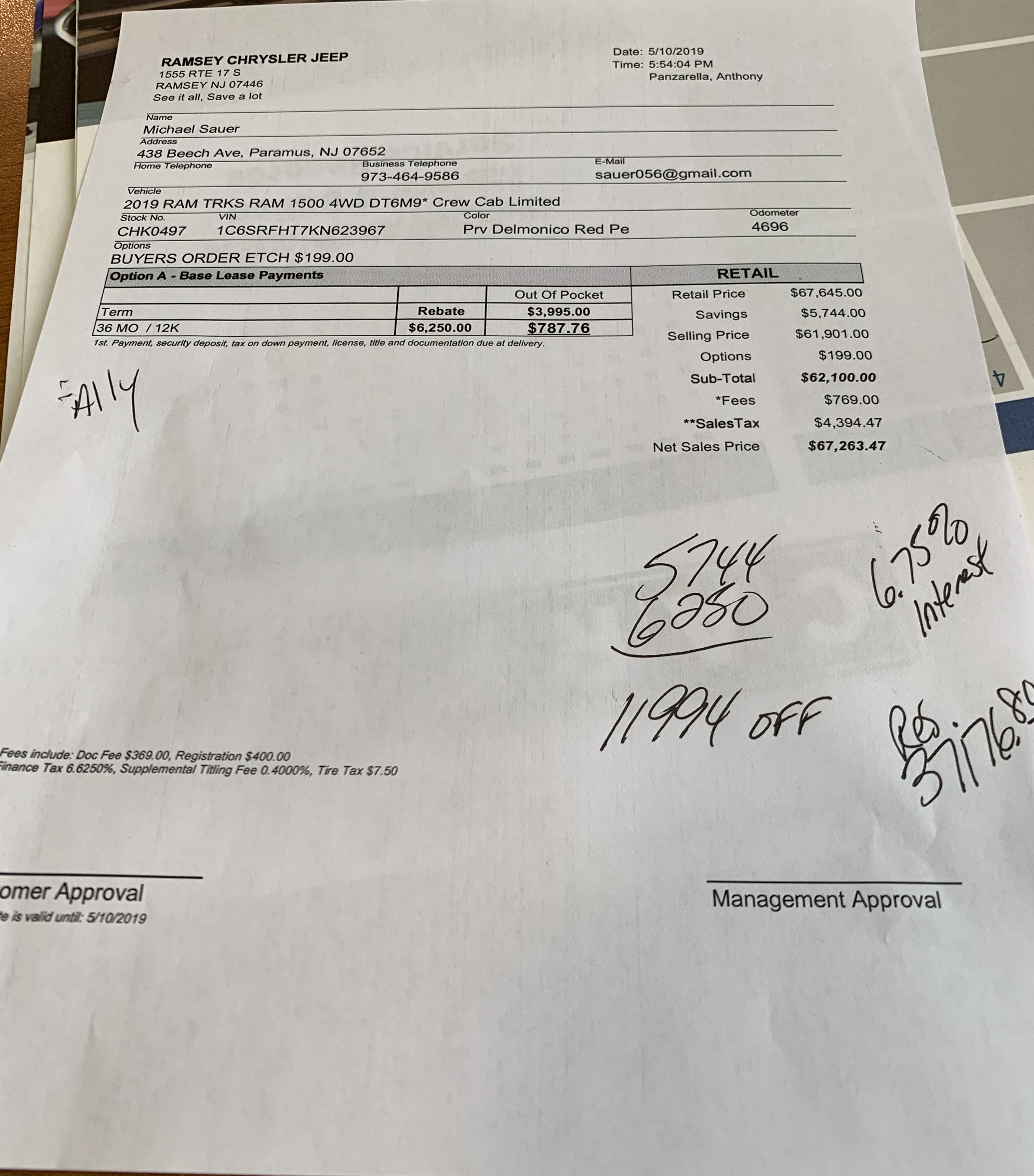 Looking for mf, rv, incentives for 2019 Laramie and Limited Crew Cab 4x4. ZIP 06437. Term 36/10.