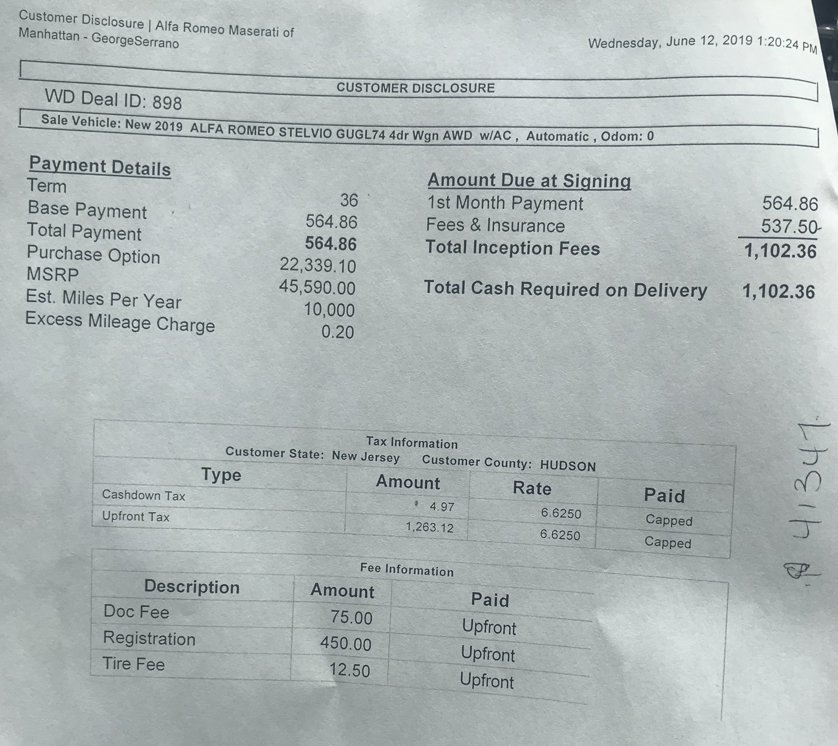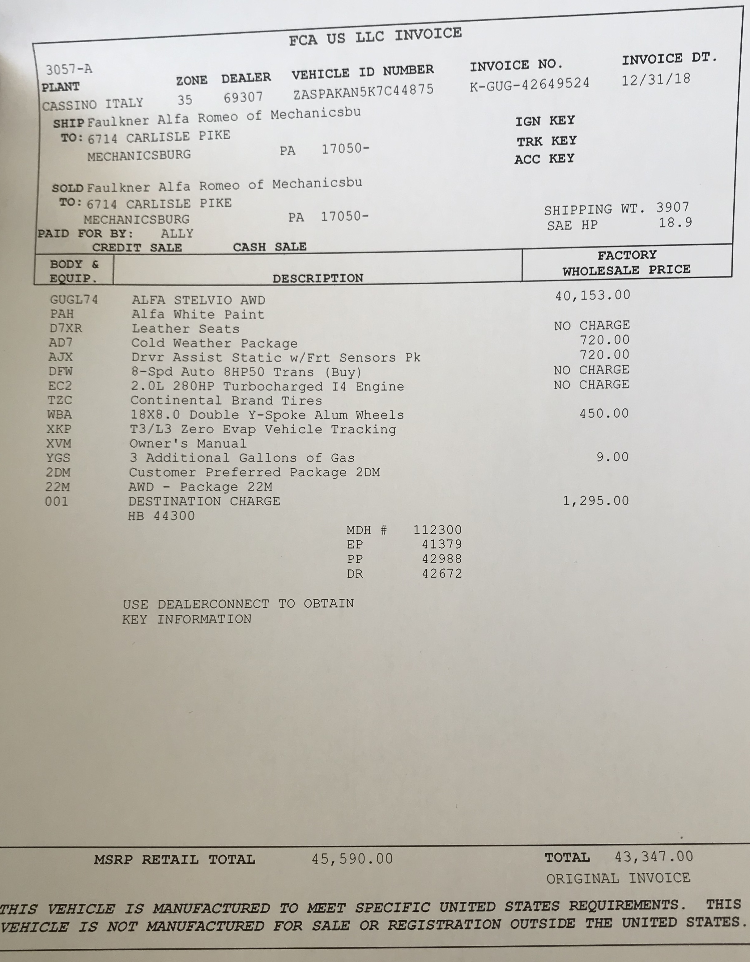 I have provided a link of the exact car I'm looking at also: https://www.glendalealfaromeo.com/vehicle-details/new-2019-alfa-romeo-stelvio-rwd-glendale-ca-id-28029828