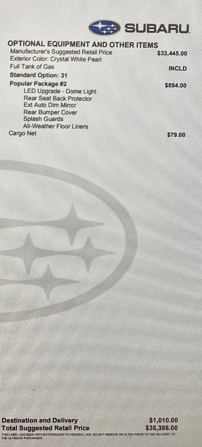 Also, do you know what the dealer added to the selling price that added over $3000?