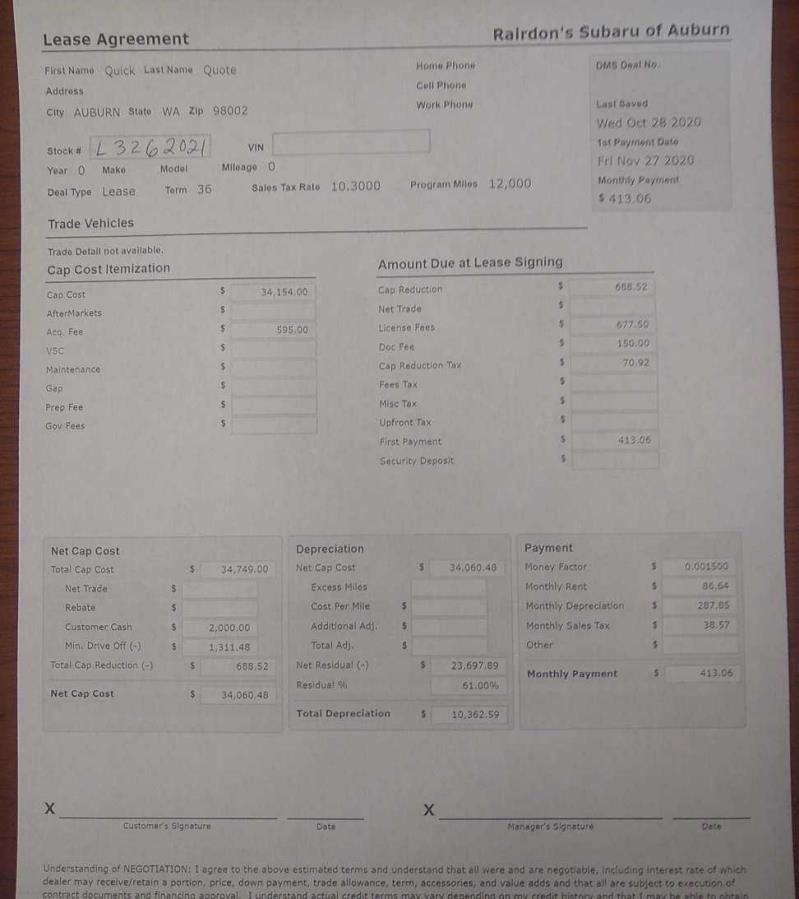 Furthermore, I found it easier to normalize lease quotes on $0 OTD . No wiggle room for the - likely intentionally - vague quote sheet currently being used.