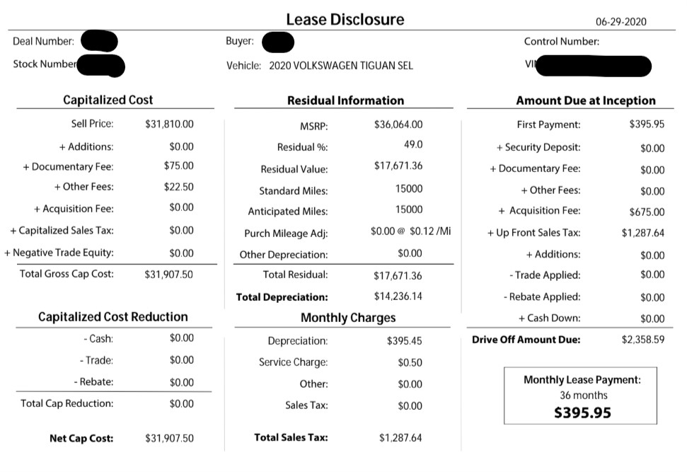 So I went to test drive a Tiguan yesterday. Received these two deals. Haven't received final figures like selling price or incentives yet as I was in a rush, but do these look like good deals? Are the incentives, MF and residual the same on both models? Zip is 92708. In reading past posts, it appears the MF is 0.00001 and residual is 51%? Not too sure on incentives.
