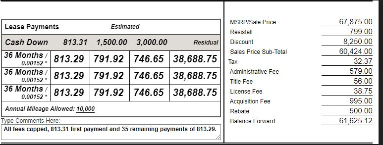 Any other areas I could negotiate on? Adjusted cap cost I believe is $61,625 (inclusive of all the fees).