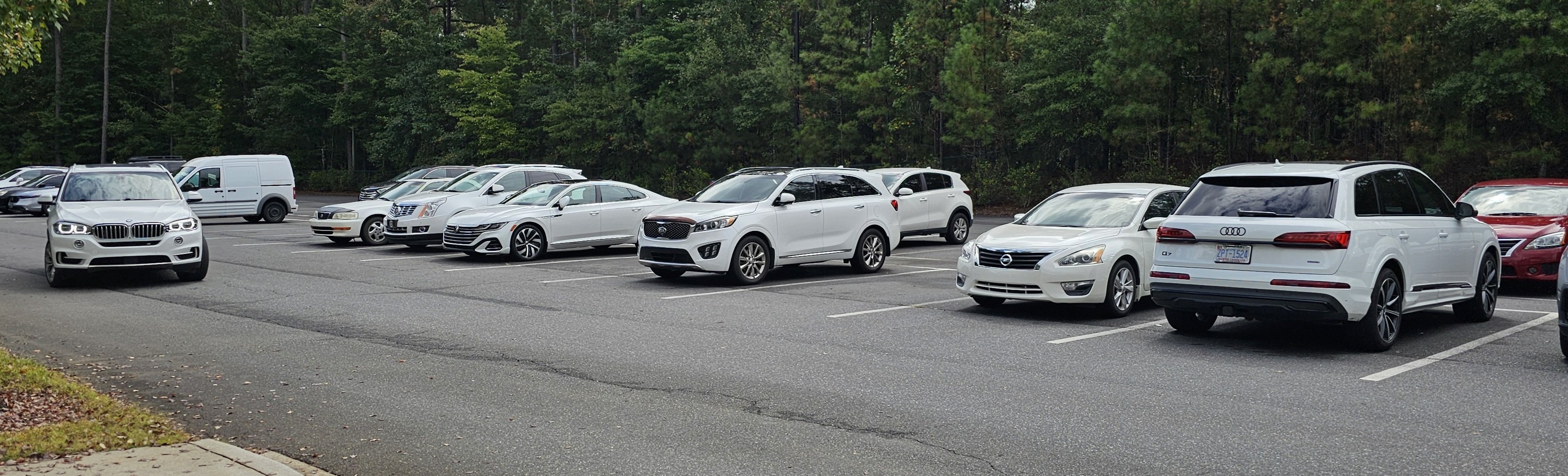 The parking lot at assisted/long term living where dad is. White vehicles anyone? The facility is called White Oak, really.