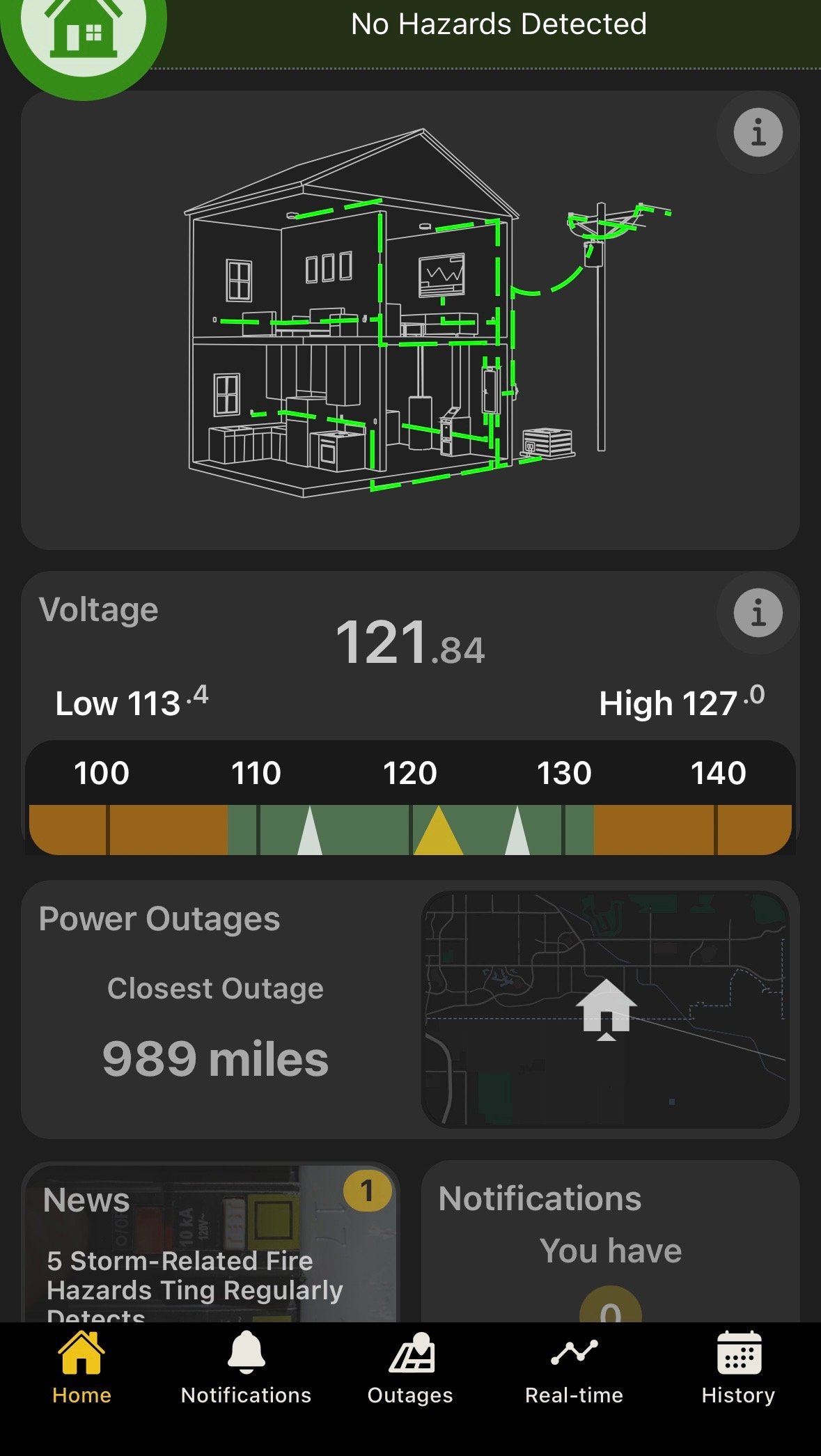 If anyone uses Jake/State Farm, know that they give you for free a device you simply plug in and tells you the voltage in your home in realtime and it lets you know when anything electric in your house malfunctions. It has a phone app. it connects to and also tells you if the event involves the neighborhood or just your home. It is called Ting and is available for purchase at ~$100, free for State Farm customers. Initially it takes a week to calibrate.