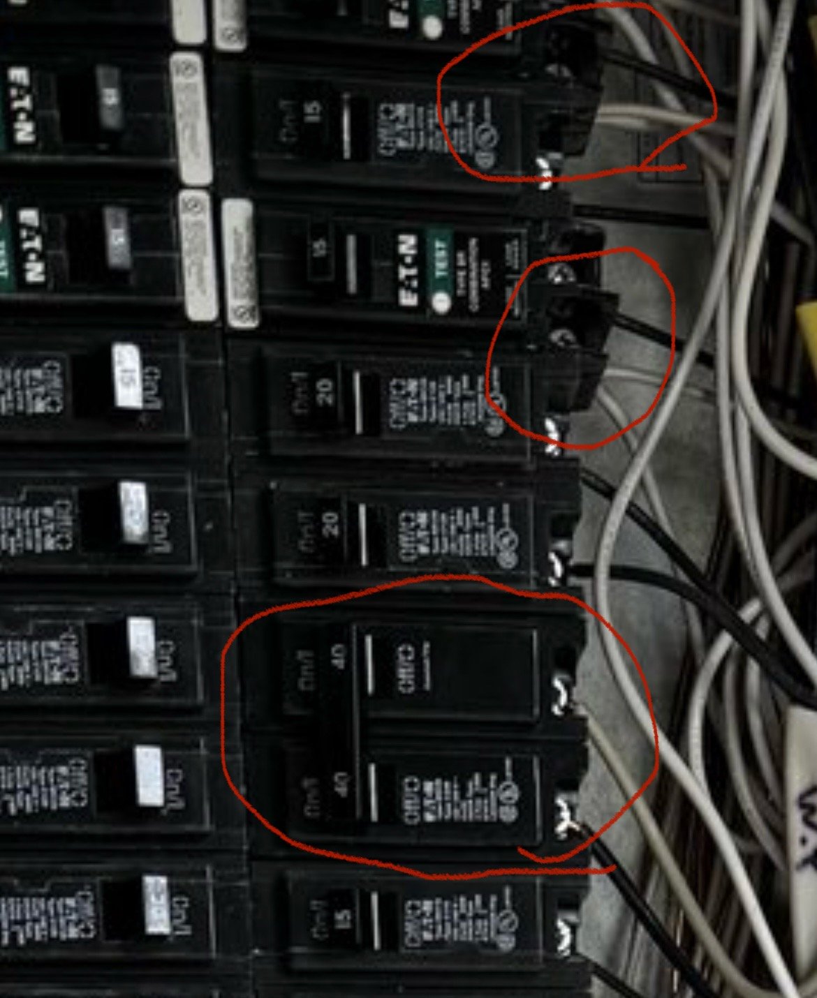 And then on a couple up top, I see one black and 2 white on a couple of breakers. How/why? Are those not hot? Is that how the neutral feeds back on a GFI? I don’t think I’ve ever seeen such a thing. I’m NOT an electrician, FYI.