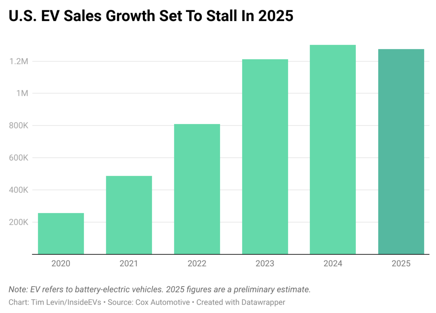 Electric car sales are projected to fall in the U.S. 2025 after years of upward growth. Here's what happened.