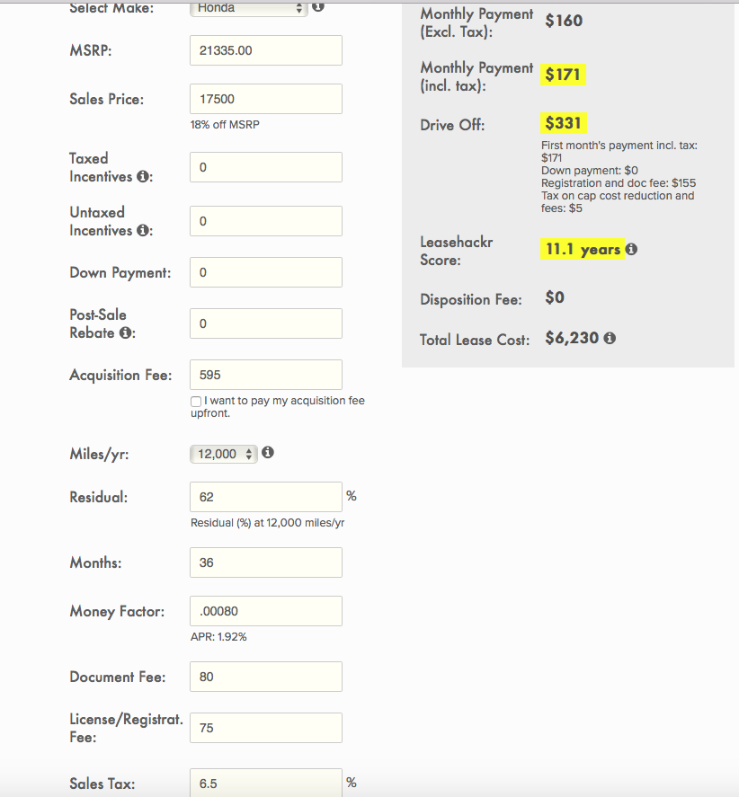 If you try to go into any lease deal expecting to hit that target, you'll likely be disappointed more often than not.