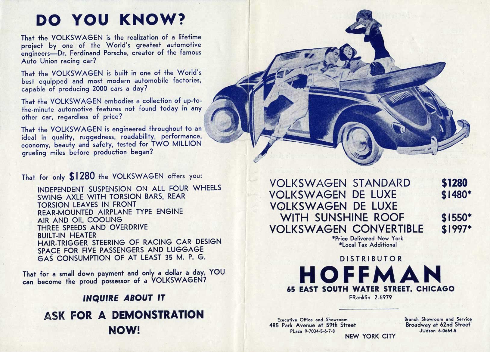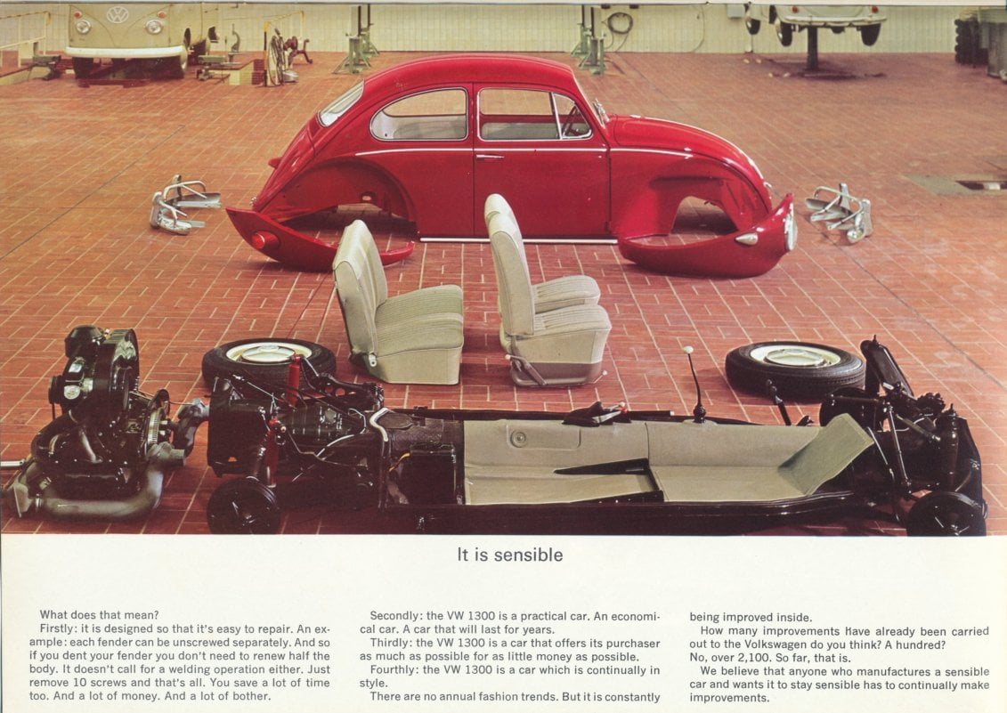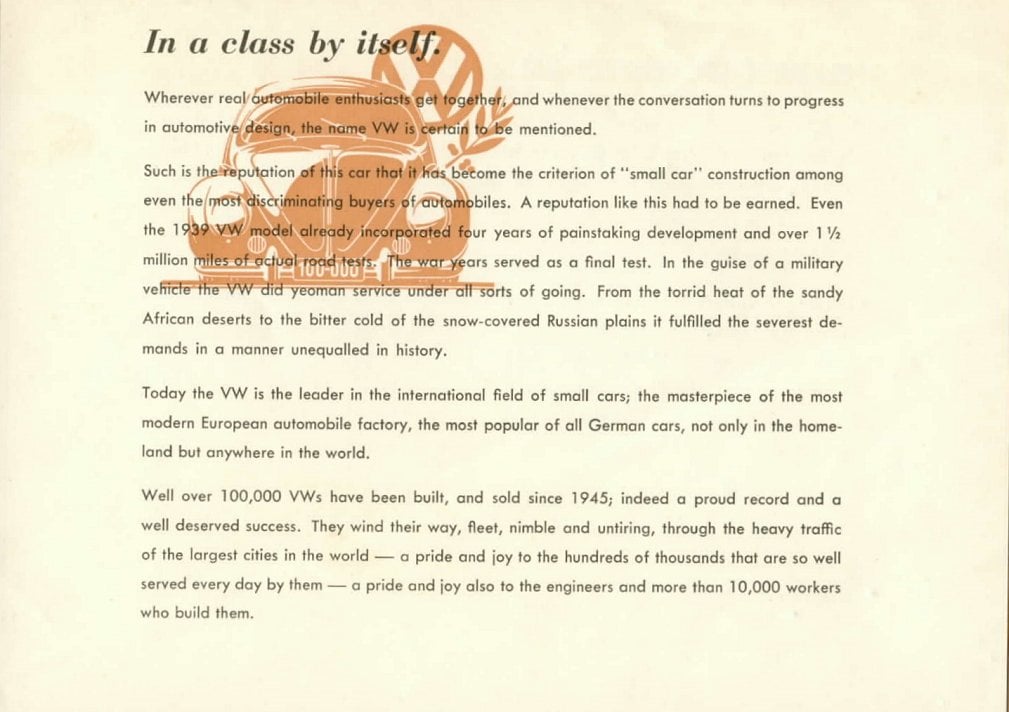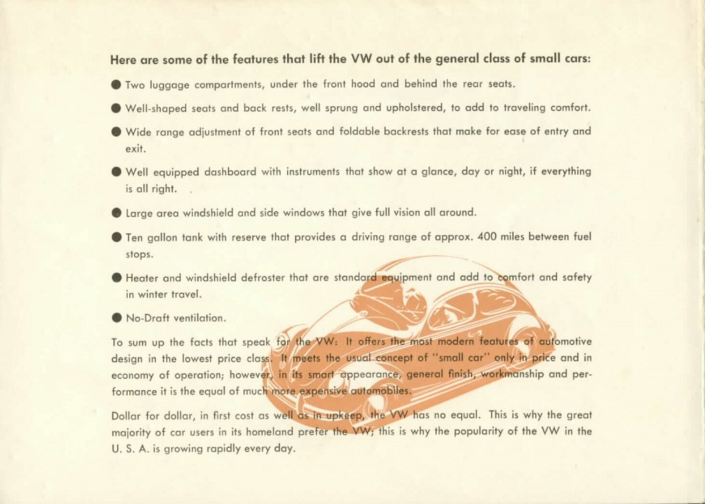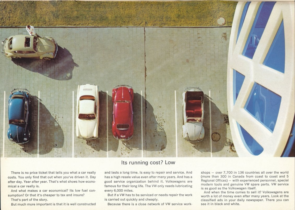 Anyway, although a non-convertible VW without options looks like a bargain today, once it was equipped with an AM/FM radio, seat belts, a side mirror, and back-up lights, it would have been around $1900. Still a good value, but in today's dollars that $19k can get in Japan a loaded Kei car today, which might be the closest thing.