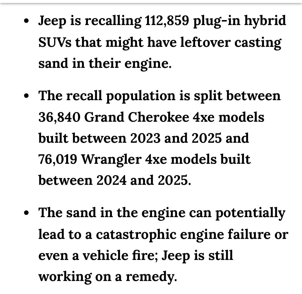Jeep isn’t the first manufacturer to have that problem. You’d think by now they’d spend a little more time flushing engines. It seems to me that would be the best way to stop that from happening. It’s got to cost a fortune having recalls like that because of a well know manufacturing flaw.