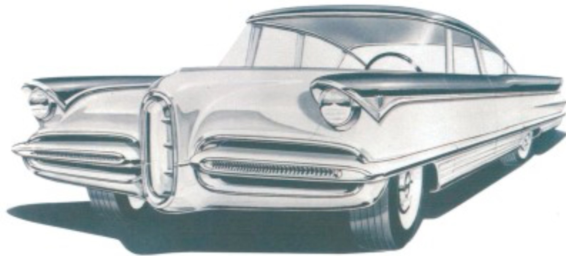 I think the Packard Predictor show car, which also had a strong central theme, looks good up front. However, the center part is much more narrow, being just a big piece of chrome trim and not a grille inlet. The front is also slightly prow-shaped, giving it a sleeker look. And, I think the hidden headlights really clean up its look. It was also just a show car...I imagine if it made it to actual production, they would have mucked it up somehow!