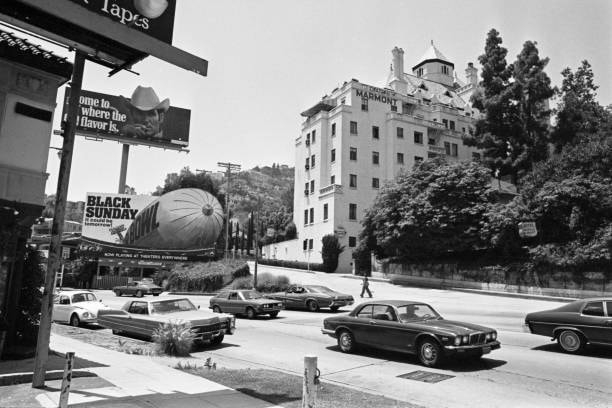 Sunset Blvd, June 1977 per the source, maybe not a rerun - small image but zooms pretty well, can pick out several:
