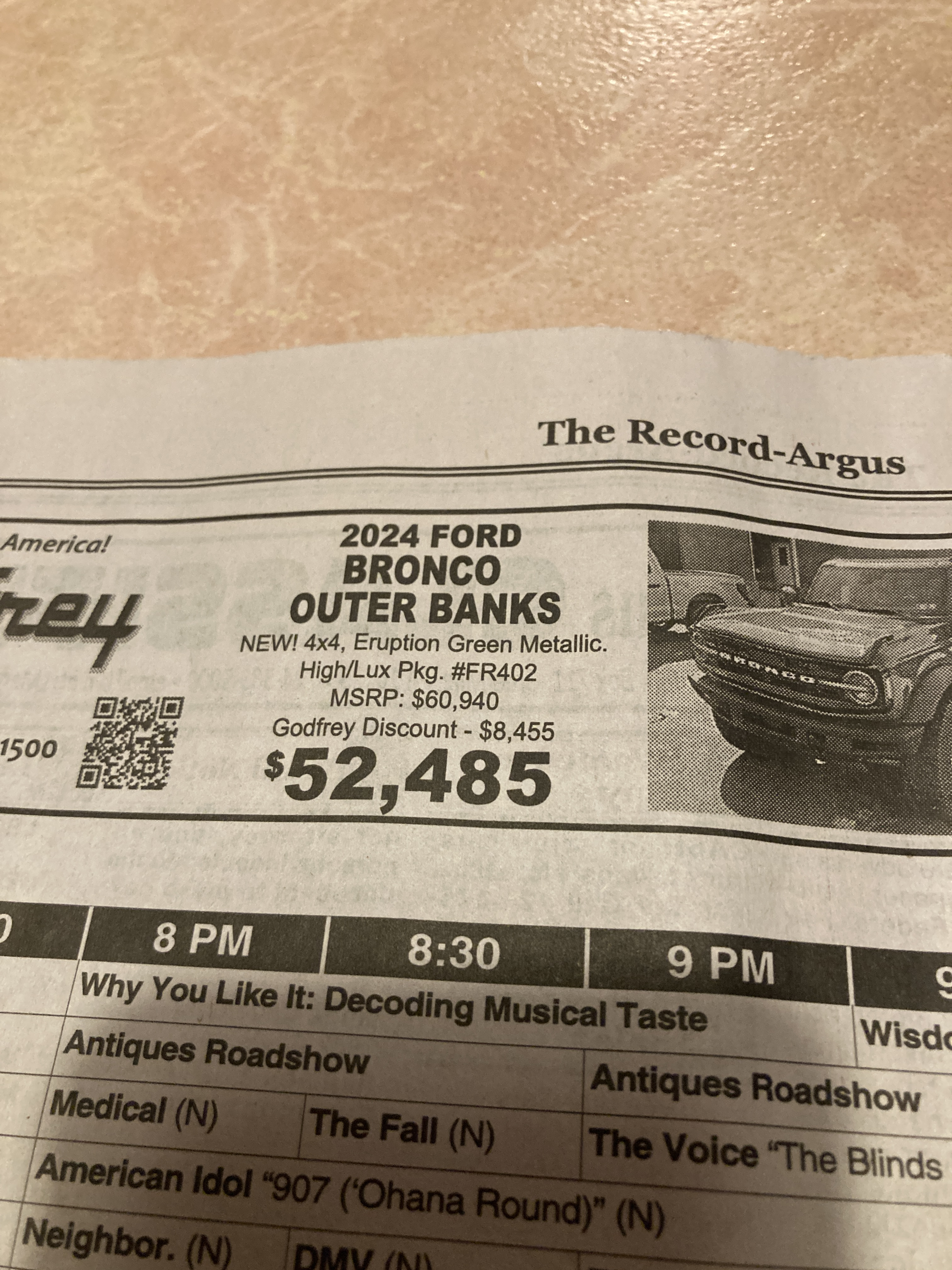 Broncos are popular where I live now, but I was stunned to see the dealer in my old hometown still has a two-year old new Bronco.